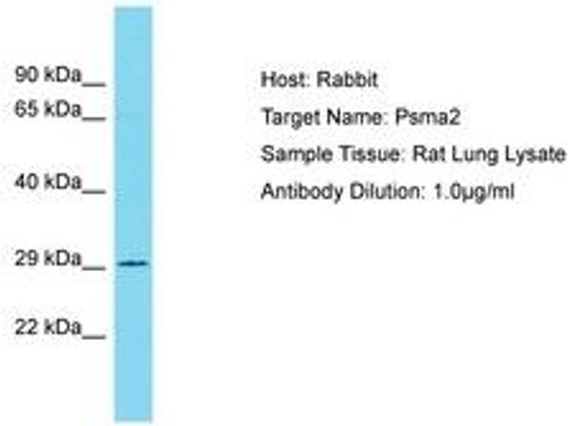 Synthetic peptide located between aa122-171 of rat Psma2 (P17220, NP_058975). Percent identity by BLAST analysis: Human, Chimpanzee, Mouse, Rat, Sheep, Bovine, Rabbit, Horse, Pig, Guinea pig, Chicken (100%).