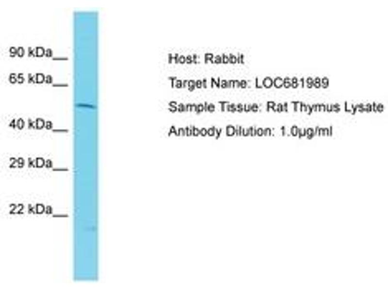 Synthetic peptide located between aa101-150 of rat LOC681989 (Q5PQN6, NP_001094474). Percent identity by BLAST analysis: Rat (100%).