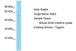 Synthetic peptide located between aa401-450 of mouse Aldh2 (P47738, NP_033786). Percent identity by BLAST analysis: Mouse (100%).