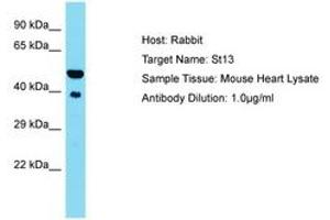 Synthetic peptide located between aa41-90 of mouse St13 (Q99L47, NP_598487). Percent identity by BLAST analysis: Mouse (100%).