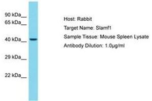 Synthetic peptide located between aa141-190 of mouse Slamf1 (Q9QUM4, NP_038758). Percent identity by BLAST analysis: Mouse (100%).