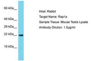Synthetic peptide from C-Terminus of mouse Rap1a (P62835, NP_663516). Percent identity by BLAST analysis: Human, Chimpanzee, Mouse, Rat, Bovine, Rabbit, Pig, Guinea pig, Chicken (100%).