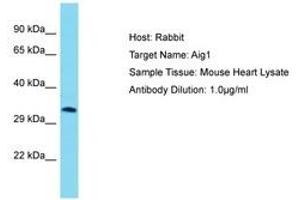 Synthetic peptide located between aa51-100 of mouse Aig1 (Q9D8B1, NP_079722). Percent identity by BLAST analysis: Mouse, Rat (100%).
