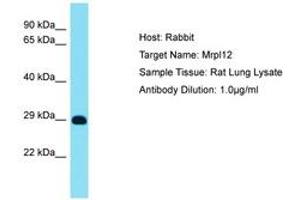 Synthetic peptide located between aa119-168 of rat Mrpl12 (D3ZXF9, NP_001025071). Percent identity by BLAST analysis: Mouse, Rat (100%).