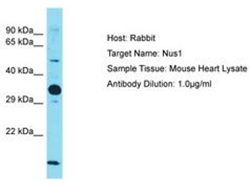 Synthetic peptide located between aa151-200 of mouse Nus1 (Q99LJ8, NP_084526). Percent identity by BLAST analysis: Mouse (100%).