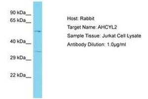 Synthetic peptide located between aa50-99 of human AHCYL2 (D9N155, NP_001124195). Percent identity by BLAST analysis: Human, Chimpanzee, Mouse, Rat, Rabbit, Pig, Guinea pig, Chicken (100%).