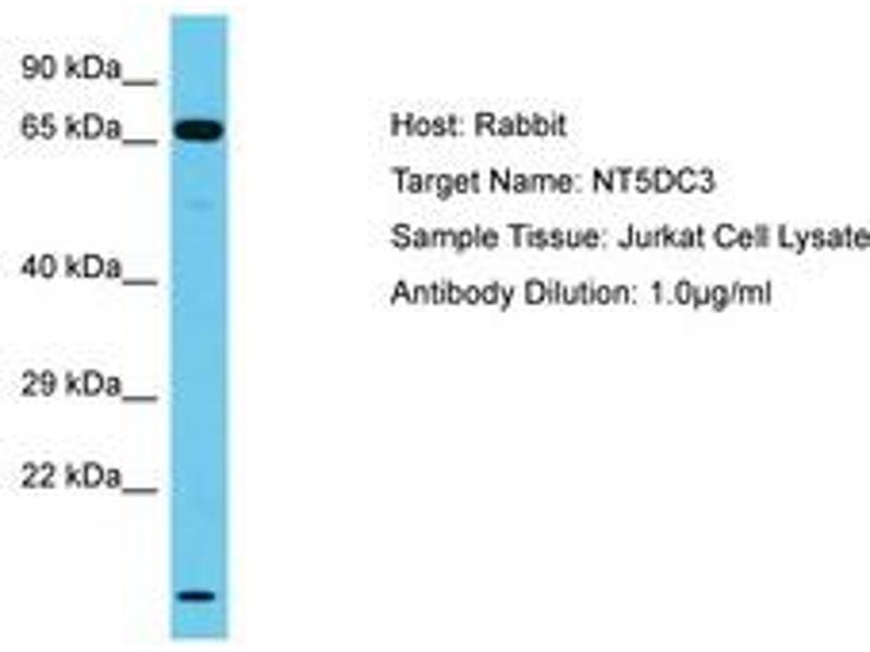 Synthetic peptide located between aa437-486 of human NT5DC3 (Q86UY8, NP_001026871). Percent identity by BLAST analysis: Human, Chimpanzee, Mouse (100%).
