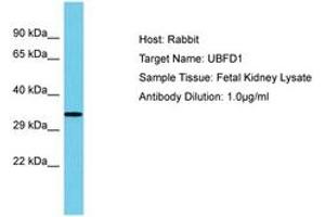 Synthetic peptide located between aa153-202 of human UBFD1 (O14562, NP_061989). Percent identity by BLAST analysis: Human, Chimpanzee, Mouse, Bovine, Rabbit, Pig (100%).