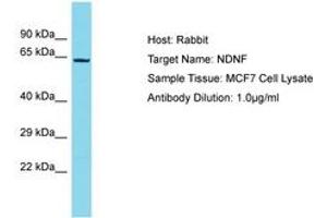 Synthetic peptide located between aa490-539 of human NDNF (Q8TB73, NP_078850). Percent identity by BLAST analysis: Human, Chimpanzee (100%).