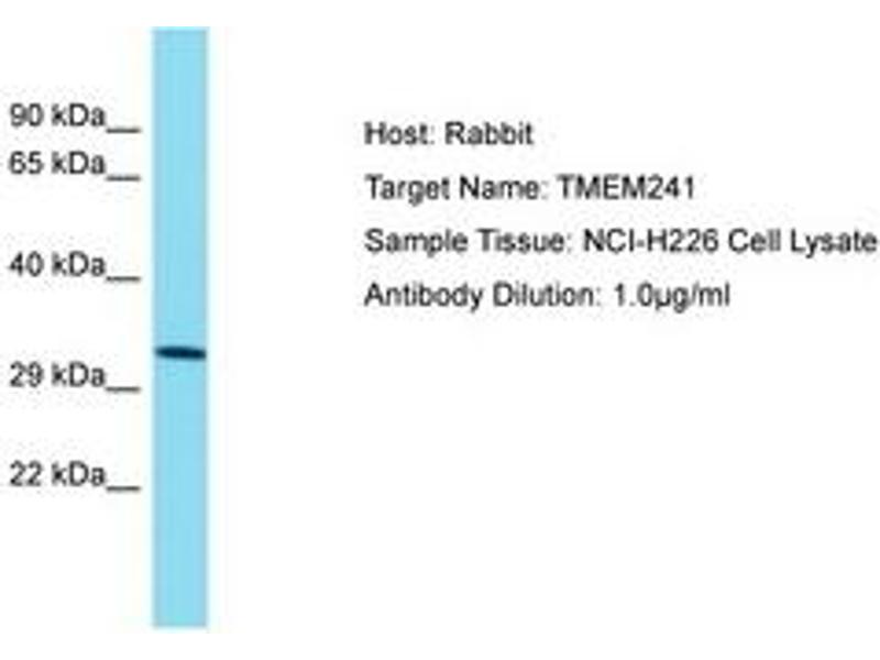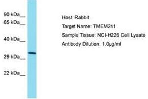 Synthetic peptide located between aa151-200 of human TMEM241 (Q24JQ0, NP_116322). Percent identity by BLAST analysis: Human (100%).