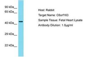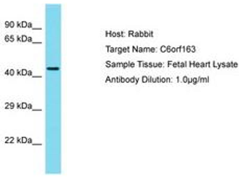 Synthetic peptide located between aa173-222 of human C6orf163 (Q5TEZ5, NP_001010868). Percent identity by BLAST analysis: Human (100%).
