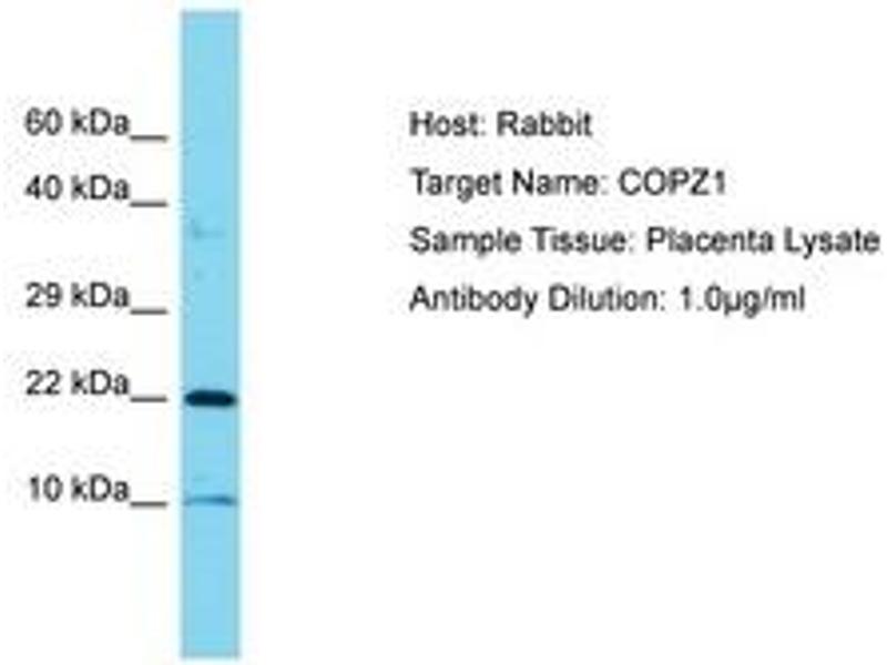 Synthetic peptide from C-Terminus of human COPZ1 (P61923, NP_057141). Percent identity by BLAST analysis: Human, Chimpanzee, Mouse, Rat, Goat, Bovine, Horse, Pig, Guinea pig (100%).