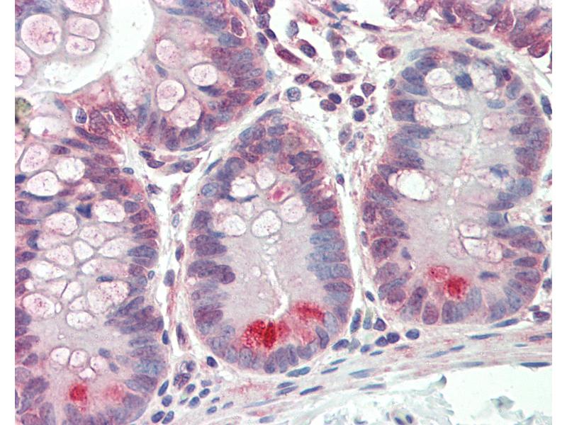 Synthetic peptide located between aa56-105 of human GUCA2A (Q02747, NP_291031). Percent identity by BLAST analysis: Human, Gorilla, Gibbon, Monkey, Elephant (100%), Galago, Marmoset (92%), Sheep (91%), Mouse, Rat (90%), Horse (84%), Bovine (83%), Pig (81%).