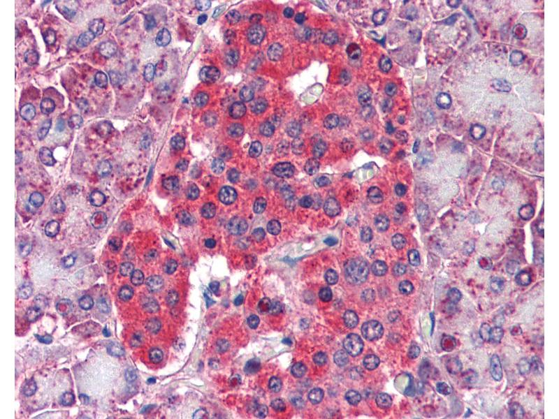 Usage: Immunohistochemistry: This antibody was validated for use in immunohistochemistry on a panel of 21 formalin-fixed, paraffin-embedded (FFPE) human tissues after heat induced antigen retrieval in pH 6.0 citrate buffer. After incubation with the primary antibody, slides were incubated with biotinylated secondary antibody, followed by alkaline phosphatase-streptavidin and chromogen. The stained slides were evaluated by a pathologist to confirm staining specificity. The optimal working concentration for this antibody was determined to be 5 μg/mL. -
