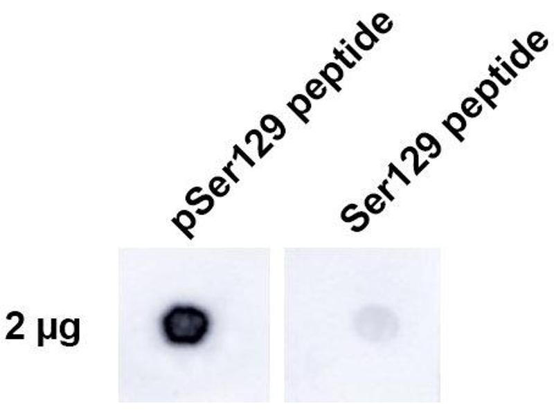 - Expressed principally in brain but is also expressed in low concentrations in all tissues examined except in liver. Concentrated in presynaptic nerve terminals.,Binds to phosphorylated serine 129 on alpha synuclein. Does not detect unphosphorylated serine 129 alpha synuclein