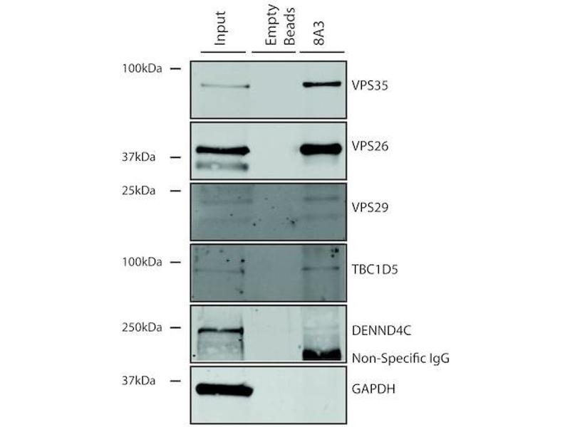 A 1:1000 dilution of ABIN6932966 was sufficient for detection of VPS35 in 10 μg of SH-SY5Y by ECL immunoblot analysis using Goat Anti-Mouse IgG:HRP as the secondary antibody.