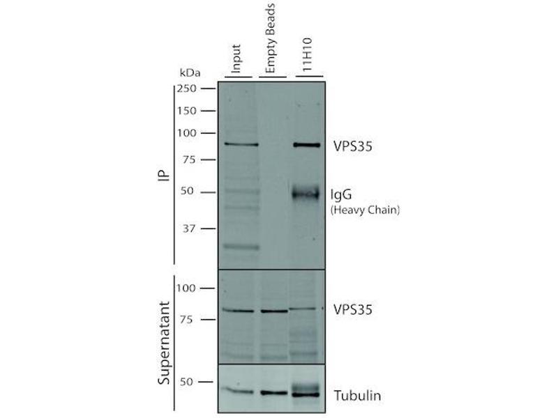 A 1:1000 dilution of ABIN6933016 was sufficient for detection of VPS35 in 10 μg of SH-SY5Y by ECL immunoblot analysis using Goat Anti-Mouse IgG:HRP as the secondary antibody.