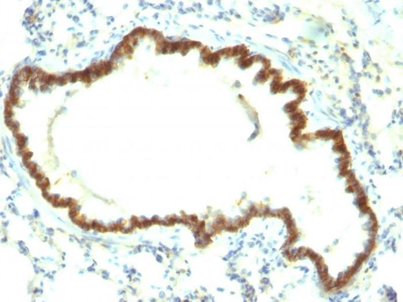 Known Application: Immunohistochemistry (Formalin-fixed) (1:50-1:100, 30 min at RT)(Staining of formalin-fixed tissues requires boiling tissue sections in 10 mM Citrate Buffer, pH 6.0, for 10-20 min followed by cooling at RT for 20 minutes)Optimal dilution for a specific application should be determined.