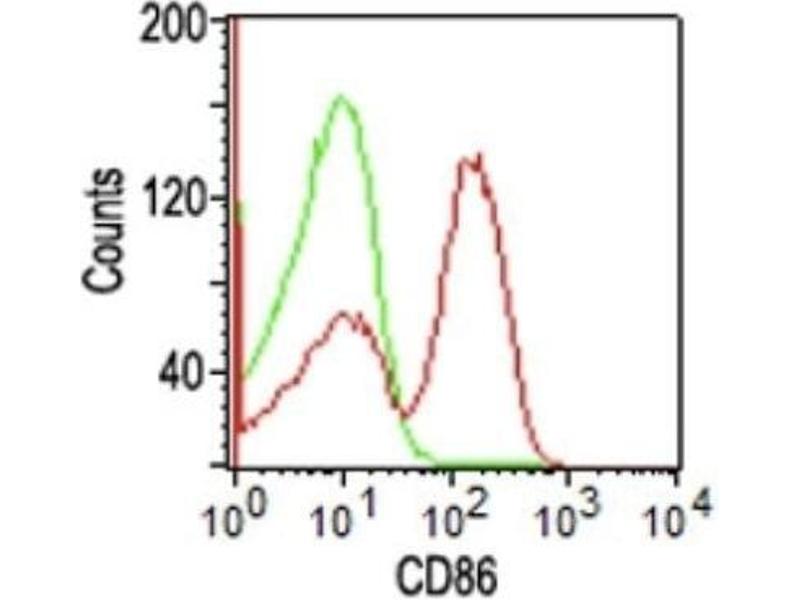 - Recognizes a protein of 70 kDa, which is identified as CD86 (HLDA V, WS Code BP BP072. HLDA V, WS Code A A109. HLDA VI, WS Code BP 95. HLDA VI, WS Code B CD86.9). CD86 is a type I transmembrane glycoprotein and a member of the immunoglobulin superfamily of cell surface receptors. It is expressed at high levels on resting peripheral monocytes and dendritic cells and at very low density on resting B and T lymphocytes. CD86 expression is rapidly upregulated by B cell specific stimuli with peak expression at 18 to 42 hours after stimulation. CD86, along with CD80/B71, is an important accessory molecule in T cell co-stimulation via its interaction with CD28 and CD152/CTLA4. Since CD86 has rapid kinetics of induction, it is believed to be the major CD28 ligand expressed early in the immune response. It is also found on malignant Hodgkin and Reed Sternberg (HRS) cells in Hodgkin's disease.