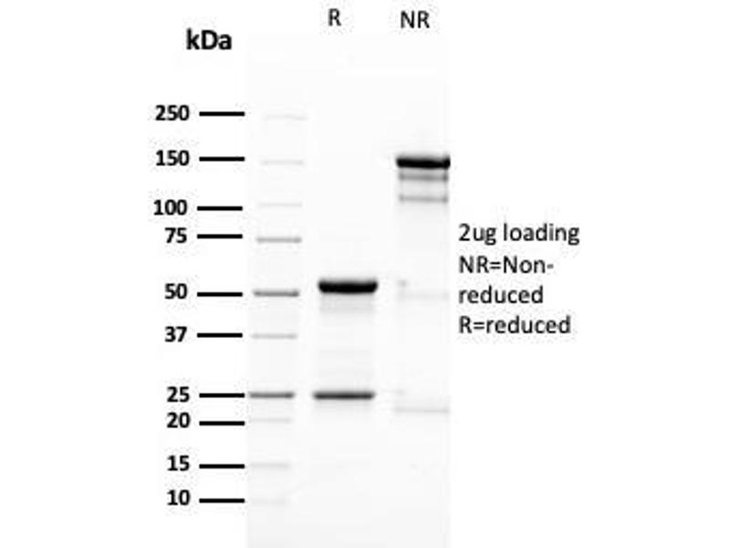 Known Application: Immunohistochemistry (Formalin-fixed) (1-2 μg/mL for 30 minutes at RT) (Staining of formalin-fixed tissues requires heating tissue sections in 10 mM Tris with 1 mM EDTA, pH 9.0, for 45 min at 95°C followed by cooling at RT for 20 minutes), Optimal dilution for a specific application should be determined.