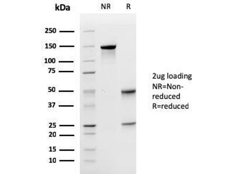 Known Application: ELISA (For coating, order Ab without BSA), Immunohistochemistry (Formalin-fixed) (1-2 μg/mL for 30 minutes at RT),(Staining of formalin-fixed tissues requires heating tissue sections in 10 mM Tris with 1 mM EDTA, pH 9.0, for 45 min at 95°C followed by cooling at RT for 20 minutes), Optimal dilution for a specific application should be determined.