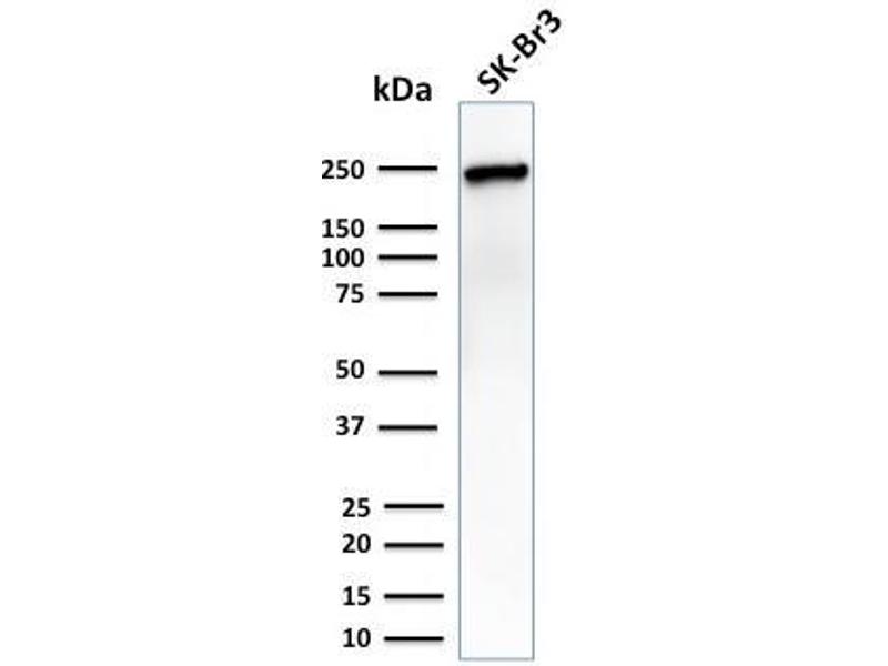 Positive Control: HeLa whole cell lysate or human placenta tissue lysate. Human breast carcinoma.