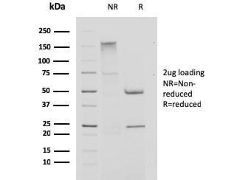 Known Application: Immunohistochemistry (Formalin-fixed) (0.5-1 μg/mL for 30 min at RT)(Staining of formalin-fixed tissues requires boiling tissue sections in 10 mM Citrate Buffer, pH 6.0, for 10-20 min followed by cooling at RT for 20 minutes)Optimal dilution for a specific application should be determined.