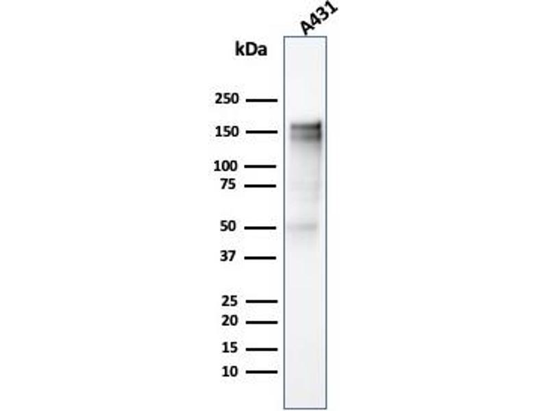 Positive Control: A431 cells. Placenta, Breast, Colon or Bladder cancer.