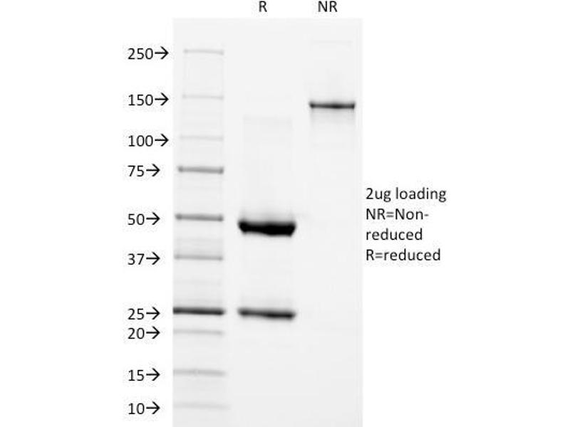 Known Application: Immunohistochemistry (Formalin-fixed) (1-2 μg/mL for 30 minutes at RT)(Staining of formalin-fixed tissues requires boiling tissue sections in 10 mM citrate buffer, pH 6.0, for 10-20 min followed by cooling at RT for 20 minutes)Optimal dilution for a specific application should be determined.