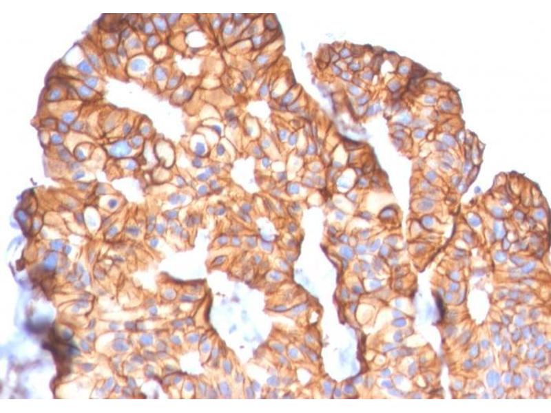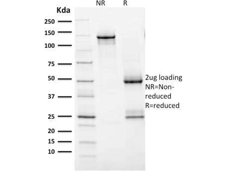 Known Application: Immunohistochemistry (Formalin-fixed) (1-2 μg/mL for 30 min at RT)(Staining of formalin-fixed tissues requires boiling tissue sections in 10 mM Citrate Buffer, pH 6.0, for 10-20 min followed by cooling at RT for 20 minutes)Optimal dilution for a specific application should be determined.