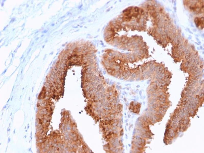 Known Application: Immunohistochemistry (Formalin-fixed) (1-2 μg/mL for 30 minutes at RT)(Staining of formalin-fixed tissues requires boiling tissue sections in 10 mM Tris with 1 mM EDTA, pH 9.0, for 10-20 min followed by cooling at RT for 20 minutes)Optimal dilution for a specific application should be determined.
