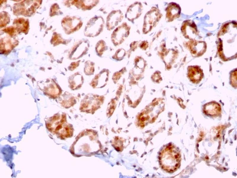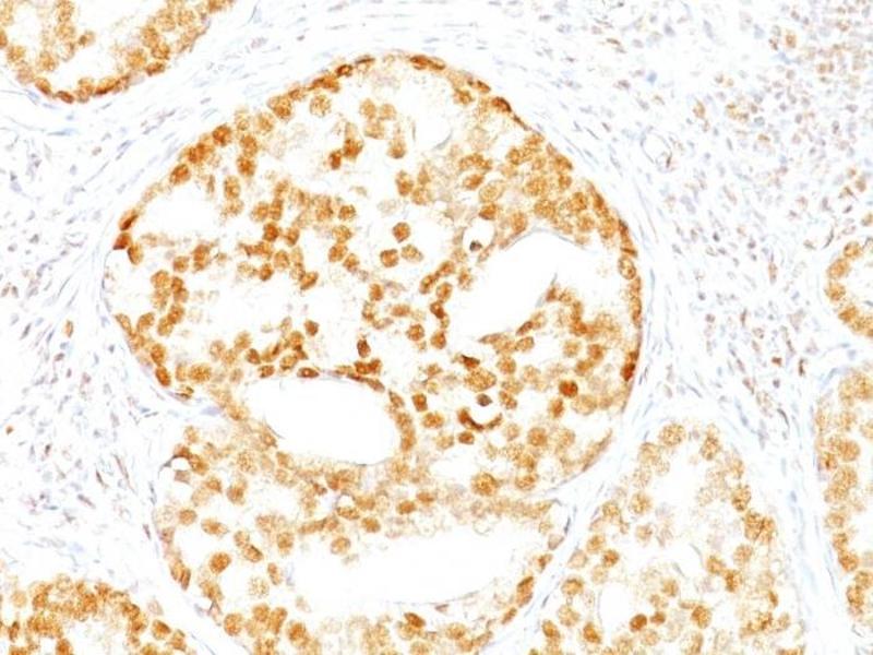 Known Application: Immunohistochemistry (Formalin-fixed) (1-2 μg/mL for 30 minutes at RT)(Staining of formalin-fixed tissues requires boiling tissue sections in 10 mM Tris with 1 mM EDTA, pH 9.0, for 10-20 min followed by cooling at RT for 20 minutes)Optimal dilution for a specific application should be determined.