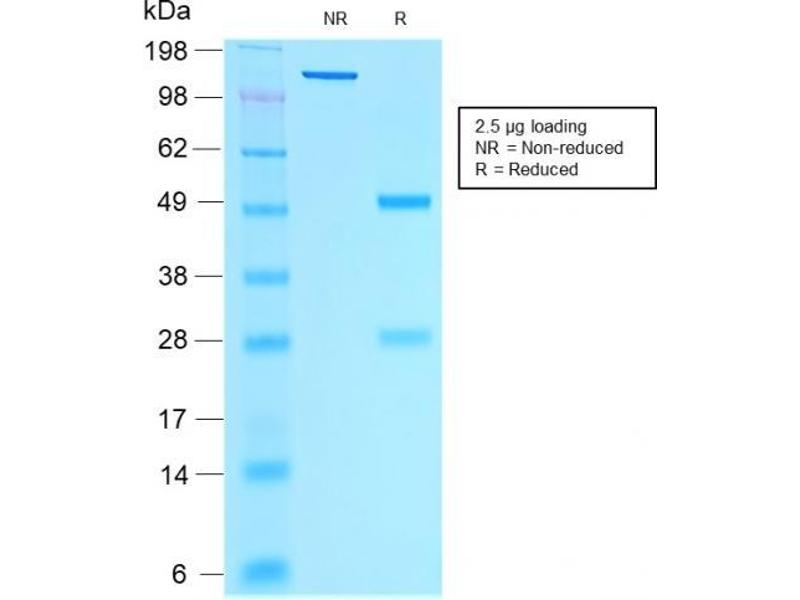 Known Application: Western Blot (1-2 μg/mL),Immunohistochemistry (Formalin-fixed) (1-2 μg/mL for 30 minutes at RT) ,(Staining of formalin-fixed tissues requires boiling tissue sections in 10 mM citrate buffer, pH 6.0, for 10-20 min followed by cooling at RT for 20 minutes),Optimal dilution for a specific application should be determined.