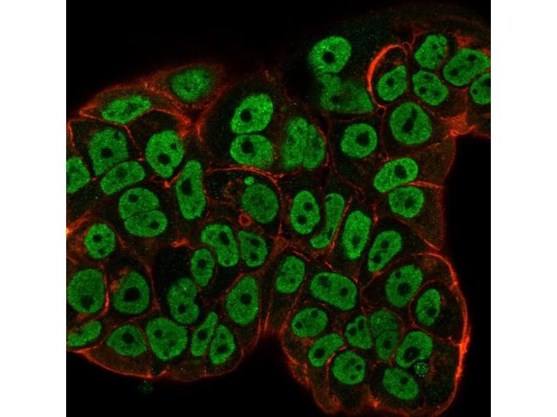 Known Application: Immunofluorescence (1-2 μg/mL), Flow Cytometry (1-2 μg/million cells),Immunohistochemistry (Formalin-fixed) (1-2 μg/mL for 30 minutes at RT),(Staining of formalin-fixed tissues requires boiling tissue sections in 10 mM citrate buffer, pH 6.0, for 10-20 min followed by cooling at RT for 20 minutes),Optimal dilution for a specific application should be determined.