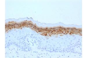 Known Application: Immunohistochemistry (Formalin-fixed) (0.5-1 μg/mL for 30 minutes at RT)(Staining of formalin-fixed tissues is enhanced by boiling tissue sections in 10 mM Citrate Buffer, pH 6.0, for 10-20 min followed by cooling at RT for 20 minutes)Optimal dilution for a specific application should be determined.