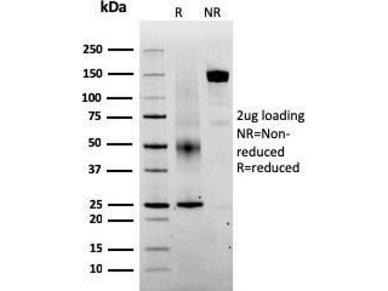 Known Application: Immunohistochemistry (Formalin-fixed) (1-2 μg/mL for 30 minutes at RT)(Staining of formalin-fixed tissues requires boiling tissue sections in 10 mM citrate buffer, pH 6.0, for 10-20 min followed by cooling at RT for 20 minutes)Optimal dilution for a specific application should be determined.