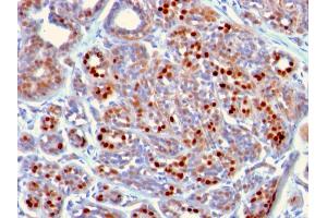 Known Application: Immunohistochemistry (Formalin-fixed) (1-2 μg/mL for 30 min at RT)(Staining of formalin-fixed tissues requires boiling tissue sections in 10 mM citrate buffer, pH 6.0, for 10-20 min followed by cooling at RT for 20 minutes)Optimal dilution for a specific application should be determined.