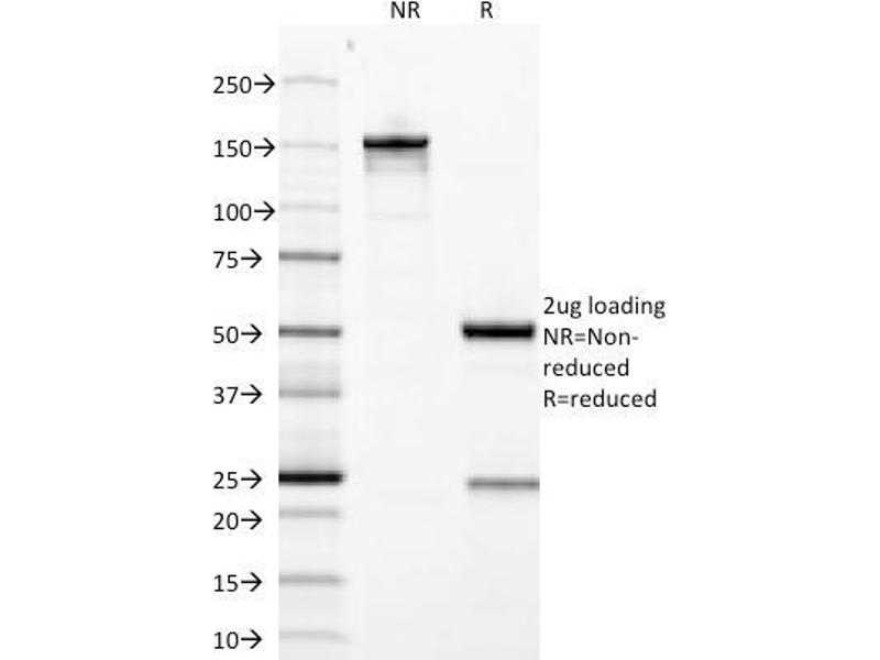 Known Application: Immunohistochemistry (Formalin-fixed) (1-2 μg/mL for 30 min at RT)(Staining of formalin-fixed tissues requires boiling tissue sections in 10 mM Citrate Buffer, pH 6.0, for 10-20 min followed by cooling at RT for 20 minutes)Optimal dilution for a specific application should be determined.