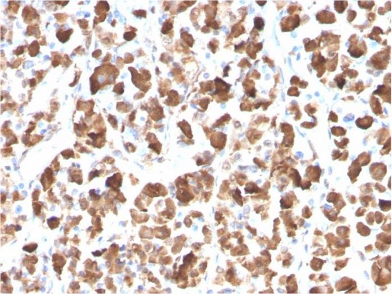 Known Application: Immunohistochemistry (Formalin-fixed) (1-2 μg/mL for 30 min at RT),(Staining of formalin-fixed tissues requires boiling tissue sections in 10 mM Citrate Buffer, pH 6.0, for 10-20 min followed by cooling at RT for 20 minutes),Optimal dilution for a specific application should be determined.