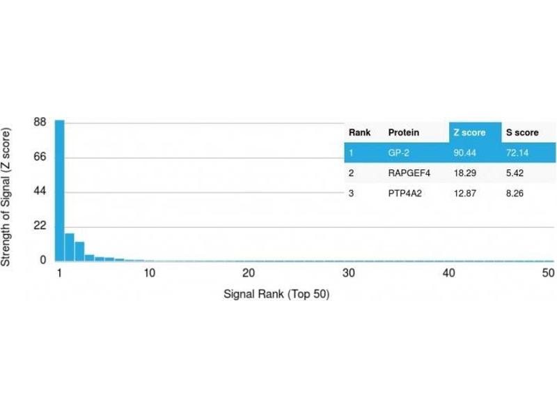 - Recombinant fragment of human GP2 protein (around aa 35-179) (exact sequence is proprietary)