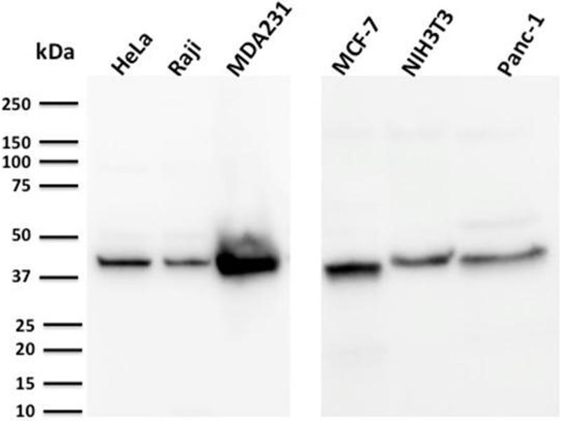 Positive Control: Jurkat, HEK293 or HepG2 cells. Lung SqCC, Cervical or Breast Carcinoma.
