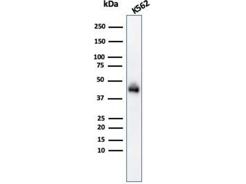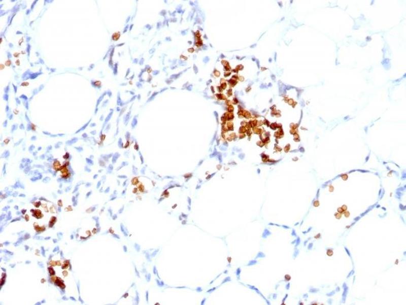 Known Application: Immunohistochemistry (Formalin-fixed) (0.5-1.0 μg/mL for 30 minutes at RT)(Staining of formalin-fixed tissues requires boiling tissue sections in 10 mM Citrate Buffer, pH 6.0, for 10-20 min followed by cooling at RT for 20 minutes)Optimal dilution for a specific application should be determined.