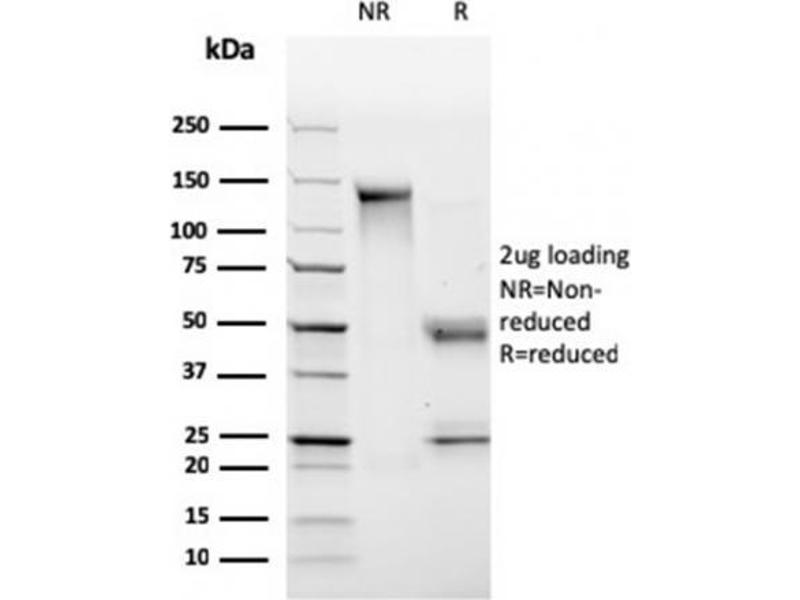 Known Application: ELISA (For coating use Ab at 2-4 μg/mL, order Ab without BSA),Flow Cytometry (1-2 μg/ million cells), ,Immunofluorescence (1-2 μg/mL), Western Blot (1-2 μg/mL),Immunohistochemistry (Formalin-fixed) (1-2 μg/mL for 30 minutes at RT),(Staining of formalin-fixed tissues requires boiling tissue sections in 10 mM Citrate Buffer, pH 6.0, for 10-20 min followed by cooling at RT for 20 minutes),Optimal dilution for a specific application should be determined.