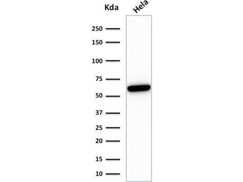 Known Application: Western Blot (0.25-0.5 μg/mL), Immunohistochemistry (Formalin-fixed) (0.5-1 μg/mL for 30 minutes at RT)(Staining of formalin-fixed tissues is enhanced by boiling tissue sections in 10 mM Citrate Buffer, pH 6.0, for 10-20 min followed by cooling at RT for 20 minutes)Optimal dilution for a specific application should be determined.