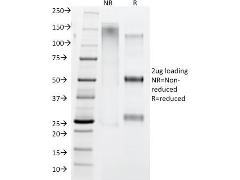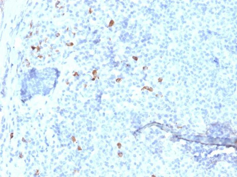 Known Application: Immunohistochemistry (Formalin-fixed) (0.5-1.0 μg/mL for 30 minutes at RT)(Staining of formalin-fixed tissues is enhanced by boiling tissue sections in 10 mM Tris with 1 mM EDTA, pH 9.0 for 10-20 min followed by cooling at RT for 20 minutes)Optimal dilution for a specific application should be determined.