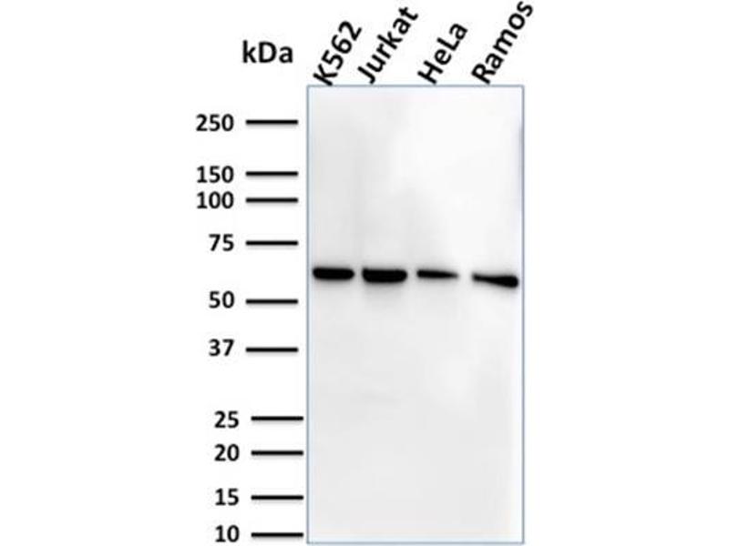 Positive Control: K562, HeLa, Daudi or Jurkat cells. Tonsil, Lymph Node or Spleen.