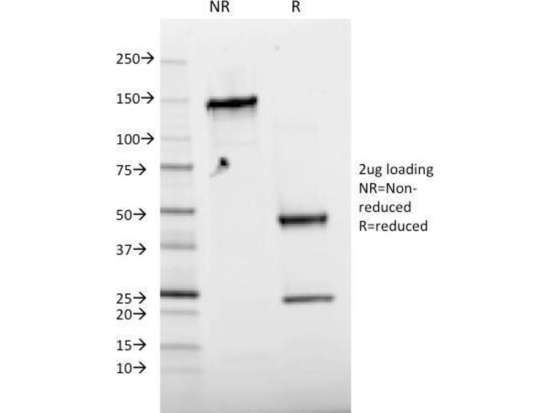 Known Application: Flow Cytometry (0.5-1 μg/million cells), Immunofluorescence (1-2 μg/mL), Western Blot (0.5-1 μg/mL), Immunohistochemistry (Formalin-fixed) (0.5-1 μg/mL for 30 min at RT)(Staining of formalin-fixed tissues requires boiling tissue sections in 10 mM Citrate Buffer, pH 6.0, for 10-20 min followed by cooling at RT for 20 minutes)Optimal dilution for a specific application should be determined.