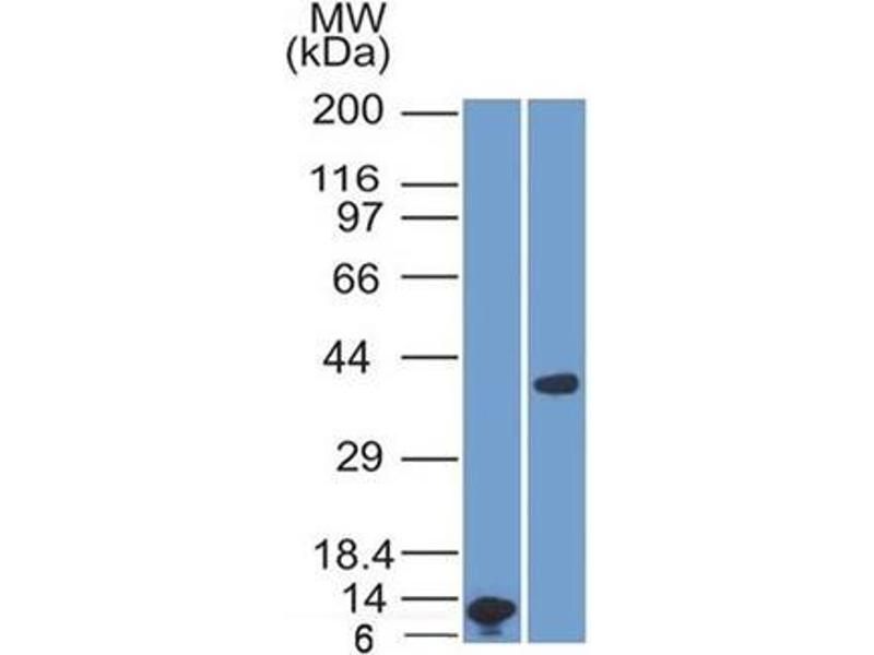 Known Application: Western Blot (1-2 μg/mL),Immunohistochemistry (Formalin-fixed) (2-4 μg/mL for 30 minutes at RT) (Staining of formalin-fixed tissues requires boiling tissue sections in 10 mM citrate buffer, pH 6.0, for 10-20 min followed by cooling at RT for 20 minutes)Optimal dilution for a specific application should be determined.