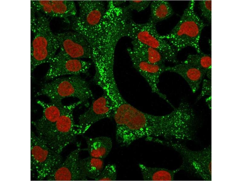 Known Application: Flow Cytometry (1-2 μg/million cells), Immunofluorescence (1-2 μg/mL), Immunohistochemistry (Formalin-fixed) (1-2 μg/mL for 30 min at RT)(Staining of formalin-fixed tissues requires boiling tissue sections in 10 mM citrate buffer, pH 6.0, for 10-20 min followed by cooling at RT for 20 minutes)Optimal dilution for a specific application should be determined.