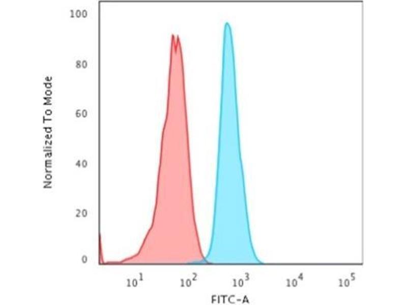 Known Application: Flow Cytometry (0.5-1 μg/million cells), Western Blot (1-2 μg/mL), Immunohistochemistry (Formalin-fixed) (1-2 μg/mL for 30 min at RT)(Staining of formalin-fixed tissues requires boiling tissue sections in 10 mM Citrate Buffer, pH 6.0, for 10-20 min followed by cooling at RT for 20 minutes)Optimal dilution for a specific application should be determined.